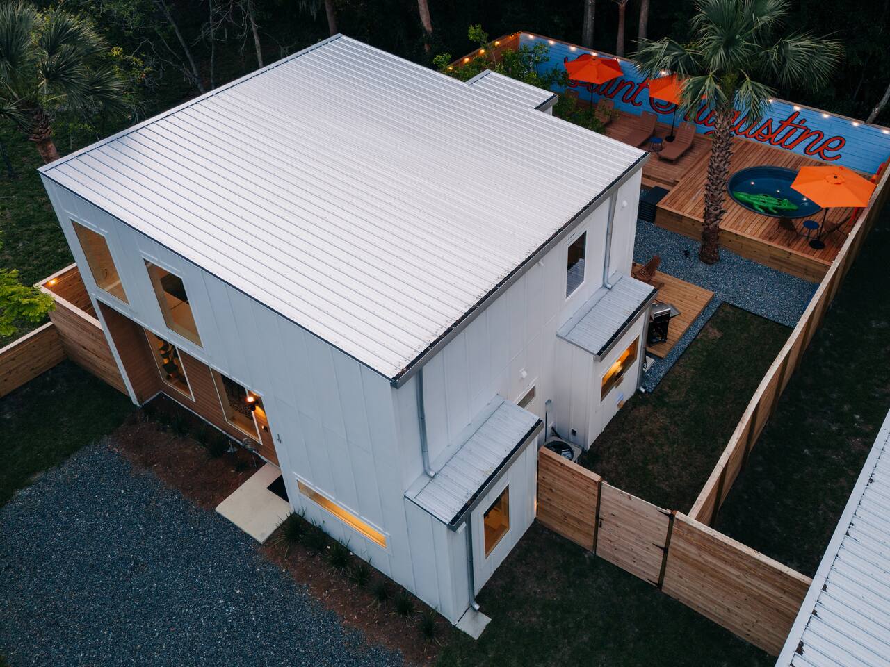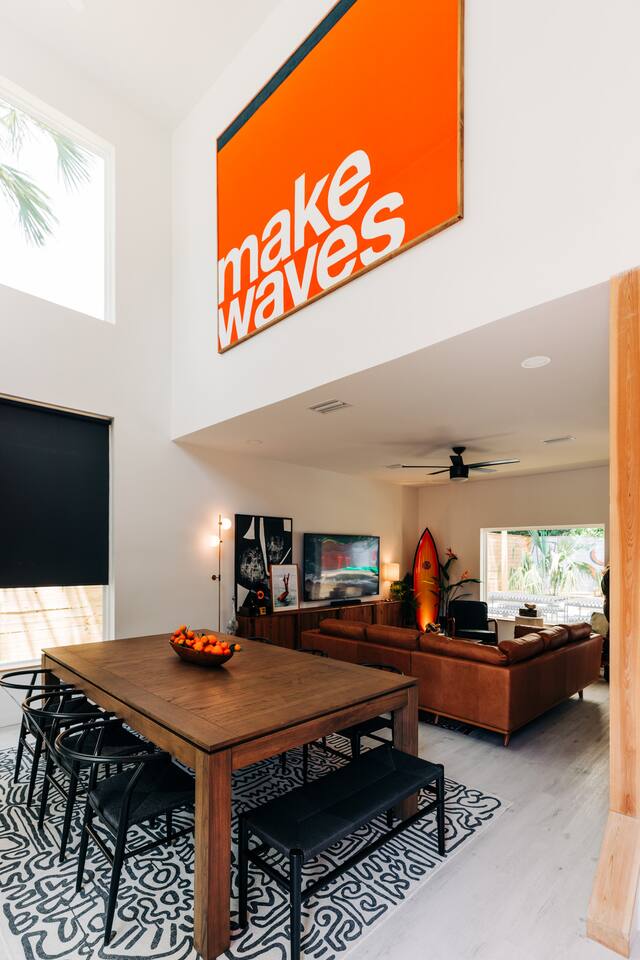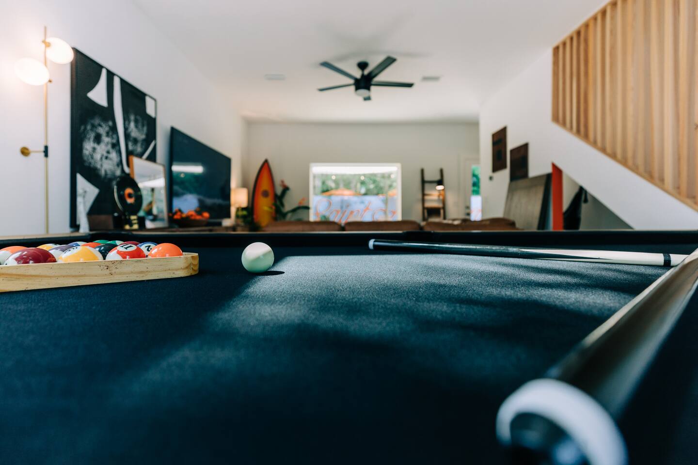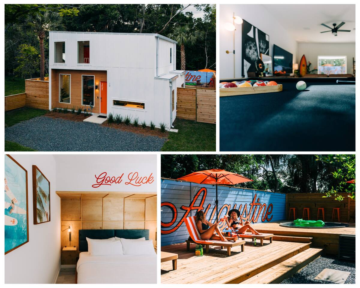 *Please Note: You cannot book on behalf of someone else. The person booking the property must be staying during the rental period.* — Booking for other people and/or groups is not permitted (per AirBnb regulations)- unless previously inquiring and confirming with hosts. Thank you! Amenities: · Billiards Table · 10 Foot Saltwater Cocktail Pool & Poolside Bar · Sun Deck With Umbrellas And Lounge Chairs · Corn Hole · Outdoor Dining · Fire Pit · Grill · 75” TV · Vinyl Record Player · Coffee & Cocktail Bar · Puzzles, Playing Cards, & Board Games · Laundry Room · Wi-Fi · Host Co. Hospitality Store * A rental contract will be sent to you via email upon booking and a signature will be required within 48 hours. The Space: The Pearl exists to offer a boutique hotel experience within a private, beautifully designed modern home, setting the stage for an unforgettable stay in America’s oldest city. With 3 bedrooms and 2 full bathrooms, this striking home can accommodate up to 8 guests. 🍊 Living Room: Genuine leather sectional, board games, vinyl record player with Bluetooth capability, two accent chairs, surf board decor, *hammock chair under the stairs* 🍊 Dining Room: Solid wood dining table for 8 that converts to a billiards table 🍊 Kitchen: Fully equipped gourmet kitchen, coffee & cocktail area 🍊 Room 01: Located on the lower level, king size bed, velvet headboard, reading lamps, wall mounted desk, views of the backyard, and a private entrance to the downstairs bathroom. 🍊 Room 02: Located on the upper level, king size bed, velvet headboard, reading lamps, and views of the surrounding neighborhood. 🍊 Room 03: Located on the upper level, queen size bunk bed, two desks, a full length mirror, cozy accent lighting, and views of the outdoor corn hole alleyway. 🍊 Outside: 40 foot sun deck, lounge chairs with umbrellas, 10 foot saltwater cocktail pool, private alleyway for corn hole, pergola-covered outdoor dining area, propane grill, gas fire pit 📍 Location: · On-Site Parking For 3 Vehicles 🌊 · Beaches: A short drive to the white sands and sparkling waters of Saint Augustine, Crescent, and Vilano beaches. · Historic Downtown: Just minutes away, explore charming streets filled with shops, restaurants, bars, music venues, and historic sites in America’s oldest city. · Local Attractions: Close to Flagler College, Historical Saint Augustine, St. Augustine Lighthouse, Castillo De San Marcos, and Anastasia State Park