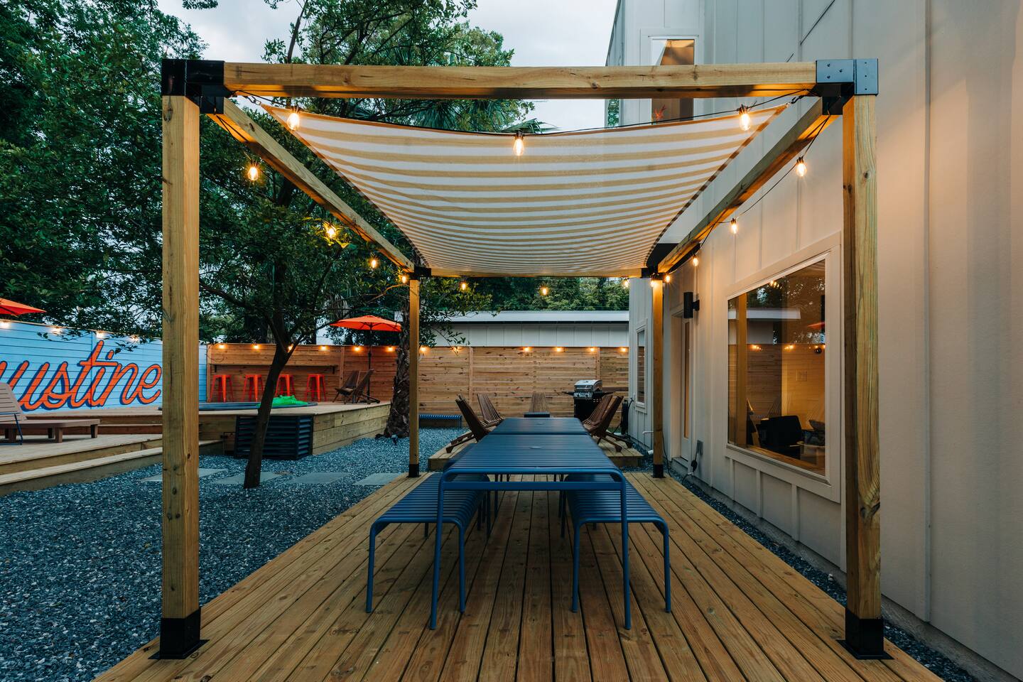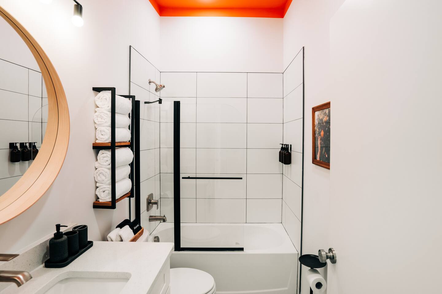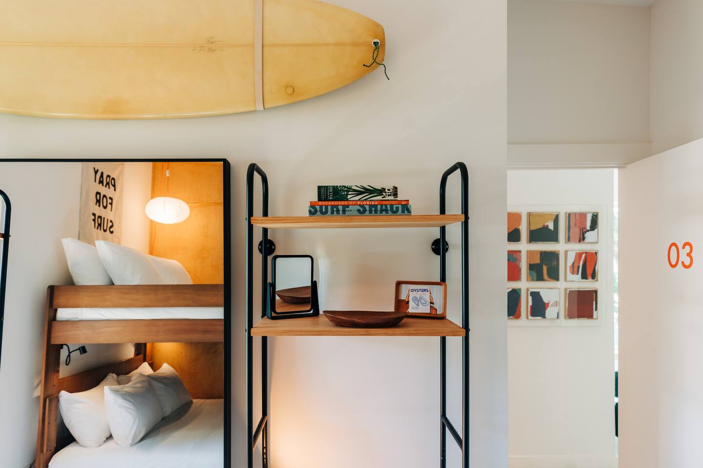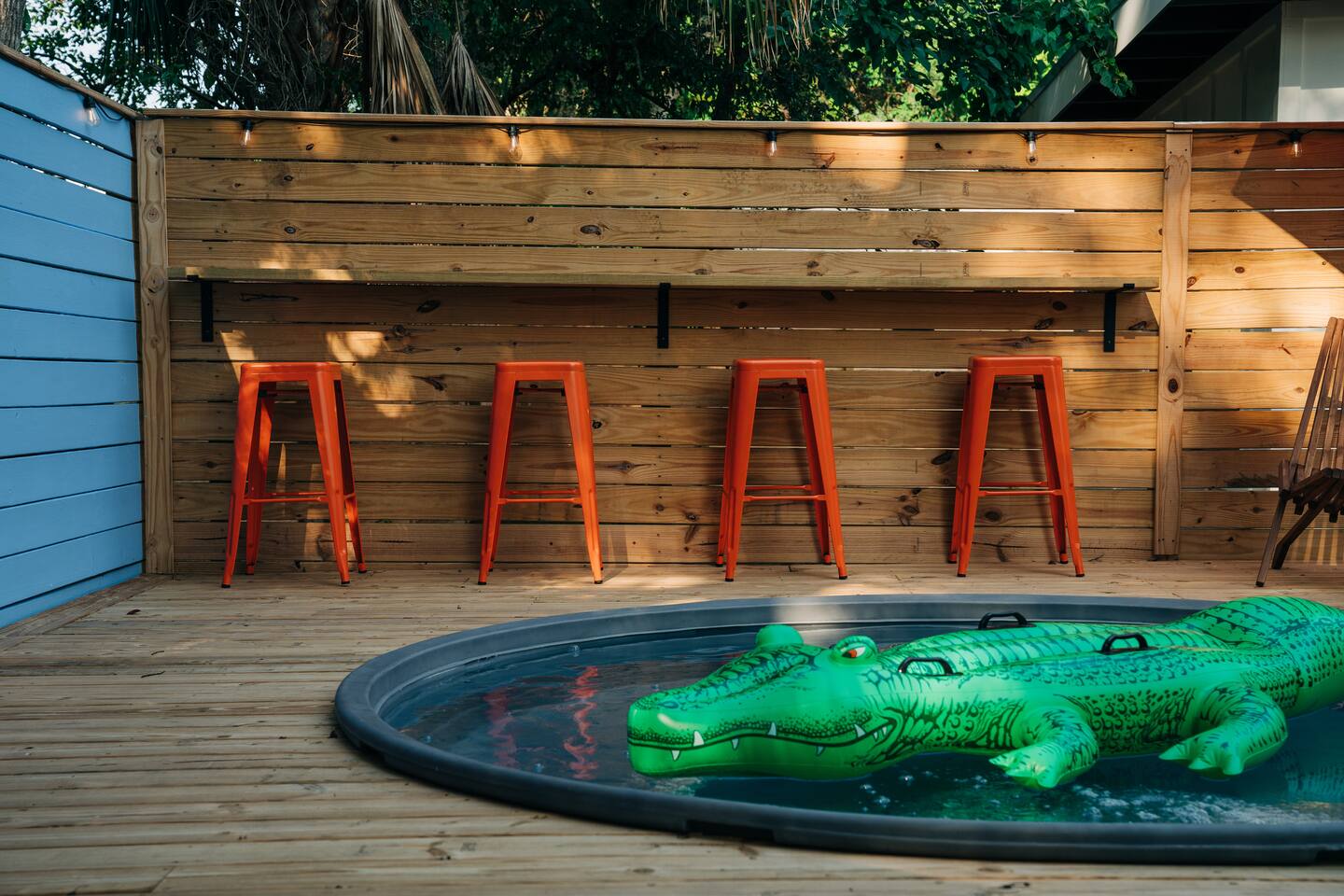 *Please Note: You cannot book on behalf of someone else. The person booking the property must be staying during the rental period.* — Booking for other people and/or groups is not permitted (per AirBnb regulations)- unless previously inquiring and confirming with hosts. Thank you! Amenities: · Billiards Table · 10 Foot Saltwater Cocktail Pool & Poolside Bar · Sun Deck With Umbrellas And Lounge Chairs · Corn Hole · Outdoor Dining · Fire Pit · Grill · 75” TV · Vinyl Record Player · Coffee & Cocktail Bar · Puzzles, Playing Cards, & Board Games · Laundry Room · Wi-Fi · Host Co. Hospitality Store * A rental contract will be sent to you via email upon booking and a signature will be required within 48 hours. The Space: The Pearl exists to offer a boutique hotel experience within a private, beautifully designed modern home, setting the stage for an unforgettable stay in America’s oldest city. With 3 bedrooms and 2 full bathrooms, this striking home can accommodate up to 8 guests. 🍊 Living Room: Genuine leather sectional, board games, vinyl record player with Bluetooth capability, two accent chairs, surf board decor, *hammock chair under the stairs* 🍊 Dining Room: Solid wood dining table for 8 that converts to a billiards table 🍊 Kitchen: Fully equipped gourmet kitchen, coffee & cocktail area 🍊 Room 01: Located on the lower level, king size bed, velvet headboard, reading lamps, wall mounted desk, views of the backyard, and a private entrance to the downstairs bathroom. 🍊 Room 02: Located on the upper level, king size bed, velvet headboard, reading lamps, and views of the surrounding neighborhood. 🍊 Room 03: Located on the upper level, queen size bunk bed, two desks, a full length mirror, cozy accent lighting, and views of the outdoor corn hole alleyway. 🍊 Outside: 40 foot sun deck, lounge chairs with umbrellas, 10 foot saltwater cocktail pool, private alleyway for corn hole, pergola-covered outdoor dining area, propane grill, gas fire pit 📍 Location: · On-Site Parking For 3 Vehicles 🌊 · Beaches: A short drive to the white sands and sparkling waters of Saint Augustine, Crescent, and Vilano beaches. · Historic Downtown: Just minutes away, explore charming streets filled with shops, restaurants, bars, music venues, and historic sites in America’s oldest city. · Local Attractions: Close to Flagler College, Historical Saint Augustine, St. Augustine Lighthouse, Castillo De San Marcos, and Anastasia State Park